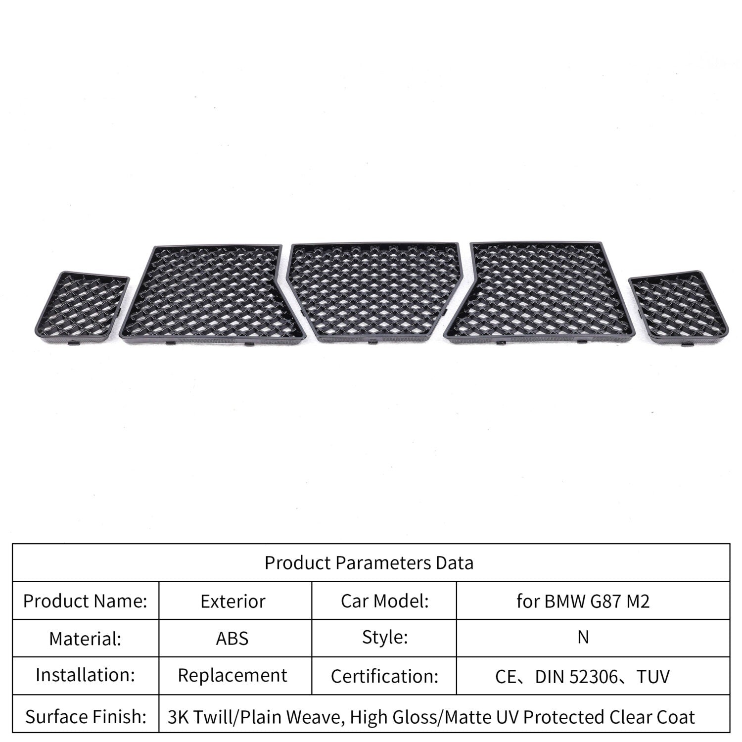 Constructed from high-quality ABS material, the grille net helps prevent damage to the radiator, intercooler, and oil cooler caused by stones, insects, leaves, and other debris encountered during daily driving or spirited performance use. Its mesh design allows proper airflow to ensure cooling efficiency is not reduced.